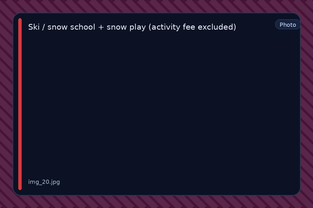 - Indoor option: hotel lounge / kids corner (ask front desk)